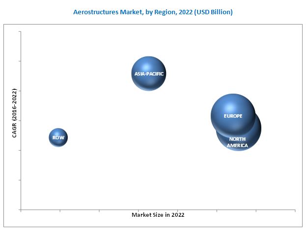 Based on region, the aerostructures market has been segmented into North America, Europe, Asia-Pacific, and Rest of the World (RoW). Countries such as China, India, and Japan, among others are increasingly investing in the development of general aviation aircraft. The aerostructures market in Asia-Pacific is projected to grow at the highest CAGR from 2016 to 2022, due to rise in aircraft deliveries in this region.